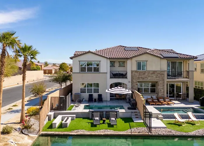 Dotata di un club di golf e un'area giochi per il golf, Lakefront W Private Pool Great For Festival Season Lago Luxe By Avantstay Indio, una villa ospitale, si trova a 2 km da attrazioni sportive come l'Eagle Falls Golf Course. Situata a 10 minuti in auto dal Spotlight 29 Casino, la casa vacanze offre Wi-Fi e un parcheggio privato gratuito.